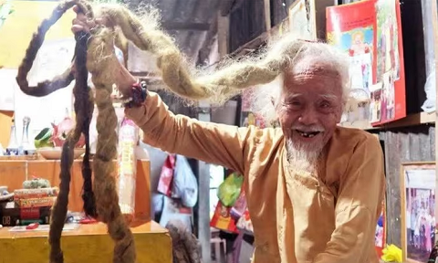 Sở hữu mái tóc dài hơn 5m cuộn như thân rồng, suốt 80 năm không cắt, cụ Nguyễn Văn Chiến gây tò mò khắp miền Tây.