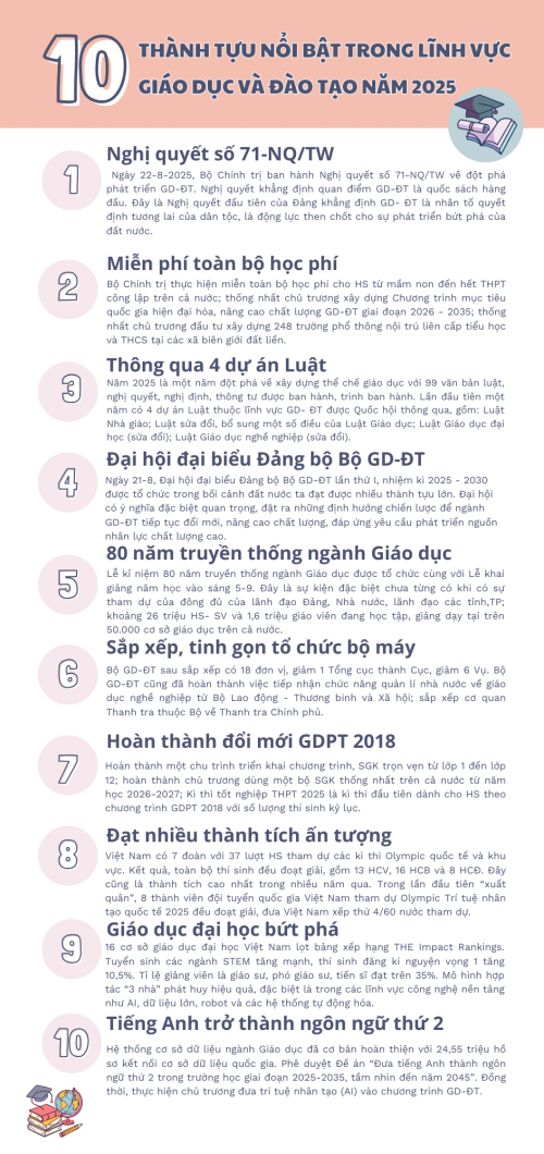 Năm 2025 đánh dấu bước ngoặt của ngành giáo dục Việt Nam với những đột phá mạnh mẽ về tư duy chiến lược, thể chế pháp lý và kết quả thực tiễn.