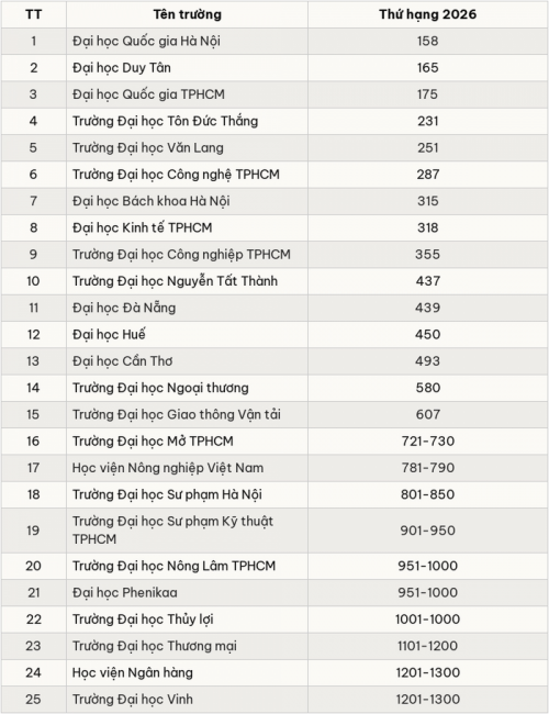 Ngoài ra, so với xếp hạng năm 2025, xếp hạng năm 2026 của các trường Việt Nam có sự biến động khá lớn.