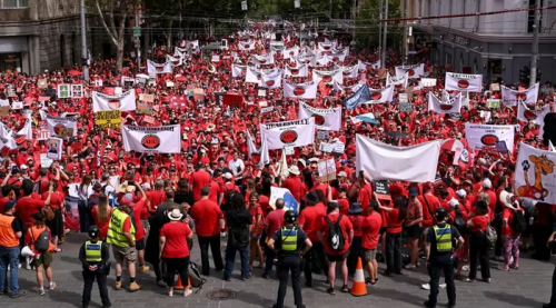Theo đó, hàng chục nghìn giáo viên đã tạo thành “biển đỏ” khi tuần hành từ Trades Hall tới bậc thềm tòa nhà Quốc hội bang tại trung tâm Melbourne. Cuộc biểu tình buộc nhiều tuyến đường lớn trong khu trung tâm phải phong tỏa, các dịch vụ xe buýt và xe điện bị gián đoạn trước khi hoạt động trở lại vào đầu giờ chiều. Cảnh sát Victoria cho biết nhìn chung tình hình diễn ra trật tự.