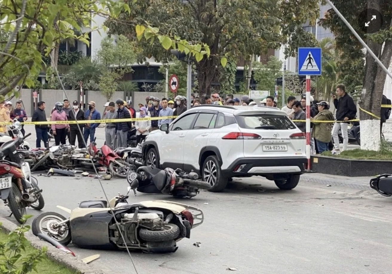 Hiện trường vụ tai nạn liên hoàn ở Hải Phòng. Ảnh: T.H. |