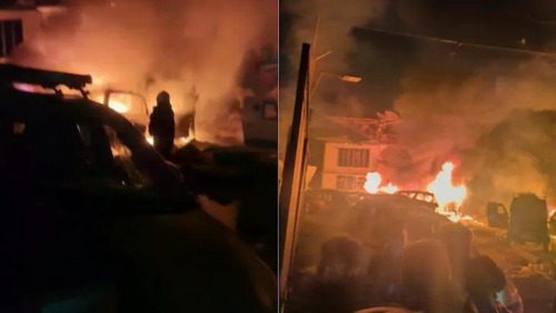 Vụ nổ đã gây ra đám cháy bao trùm tòa nhà và một số ôtô đỗ bên trong. Xe cứu hỏa và xe cứu thương ngay lập tức được điều động đến hiện trường.