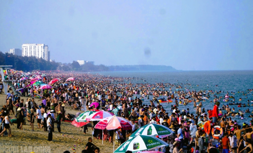 Khách du lịch tắm biển Sầm Sơn dịp nghỉ lễ 30-4 và 1-5 năm 2025 |