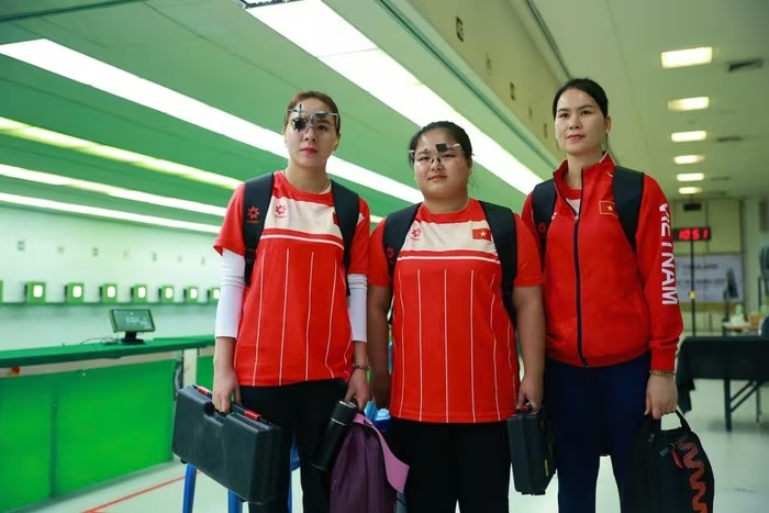 Ở nội dung đồng đội 10m súng ngắn nữ, Trịnh Thu Vinh, Nguyễn Thùy Trang, Triệu Thị Hoa Hồng thi đấu ấn tượng để giành tấm HCV SEA Games 33 đầu tiên trong ngày.