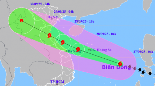 Dự báo, đến 4 giờ ngày 28-9, tâm bão số 10 Bualoi ở vào khoảng 16,3 độ Vĩ Bắc, 110,0 độ Kinh Đông, trên vùng biển phía Tây quần đảo Hoàng Sa, cách Đà Nẵng khoảng 180 km về phía Đông. Sức gió mạnh cấp 12-13, giật cấp 16.