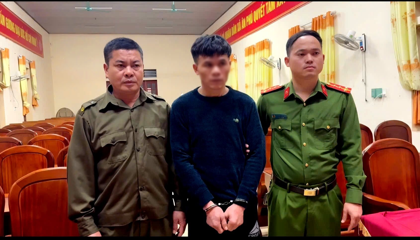 Lực lượng chức năng bắt giữ Nguyễn Trung Thành. |