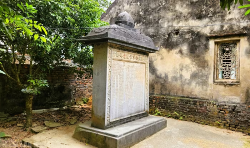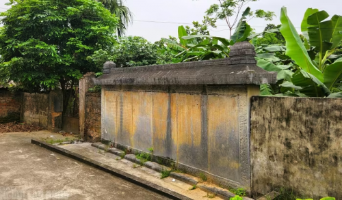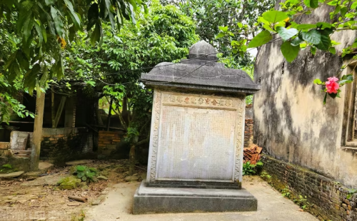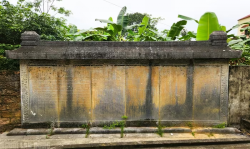 Tấm bia cổ hơn 300 năm ở di tích lịch sử Lê Thì Hải xã Thọ Phú, tỉnh Thanh Hóa thành tường rào nhà dân |