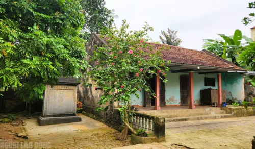 Từ tường rào đi vào trong là tấm bia cổ thứ 2 dựng ngay sát nhà dân |