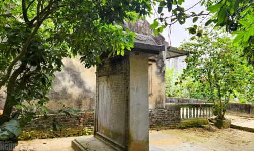 Bên trong vườn nhìn ra tấm bia cổ mà xót xa cho một di tích có giá trị lớn về mặt lịch sử |
