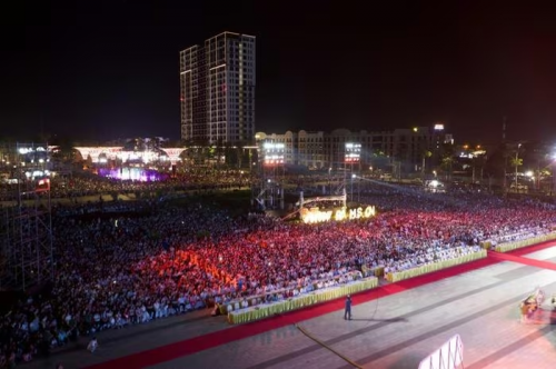 Quảng trường biển Sầm Sơn ken đặc người dự lễ khai mạc |
