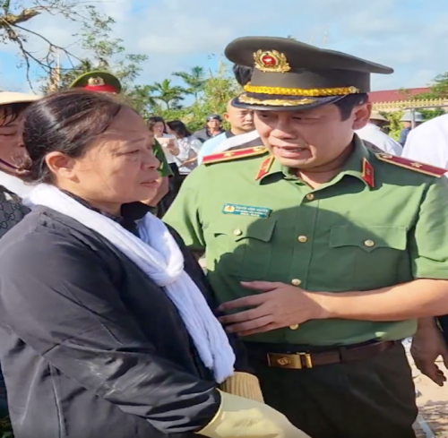 Thiếu tướng Nguyễn Hồng Nguyên, Phó Chánh Văn phòng Bộ Công an, chia sẻ, động viên trước nỗi đau mất mát của người dân do bão số 10 Bualoi gây ra |