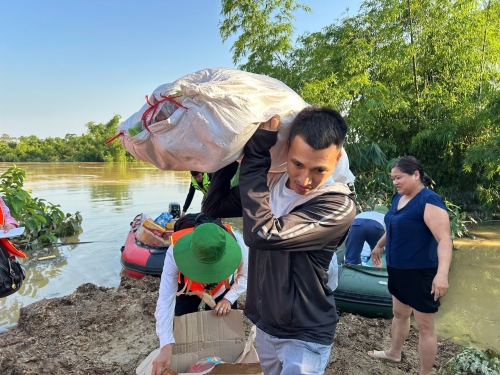 Hoạt động hỗ trợ nhu yếu phẩm cho người dân bị ngập lụt ở tỉnh Bắc Ninh vào tháng 10-2025. Ảnh: Minh Chiến |