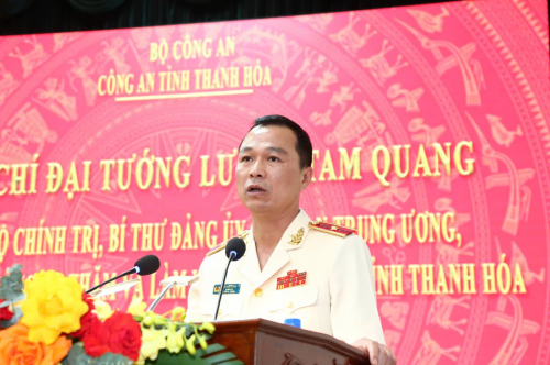 Phát biểu tại buổi làm việc, Đại tướng Lương Tam Quang, Ủy viên Bộ Chính trị, Bí thư Đảng ủy Công an Trung ương, Bộ trưởng Bộ Công an ghi nhận, biểu dương và chúc mừng những chiến công, thành tích mà Công an Thanh Hóa đã đạt được trong thời gian vừa qua.