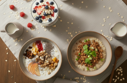 Ăn sáng bằng sữa chua/sữa nấu yến mạch hoặc nấu cháo cho các bữa ăn khác bằng yến mạch là những gợi ý hữu ích cho người cần khắc phục tình trạng máu nhiễm mỡ - Minh họa AI: Thu Anh |