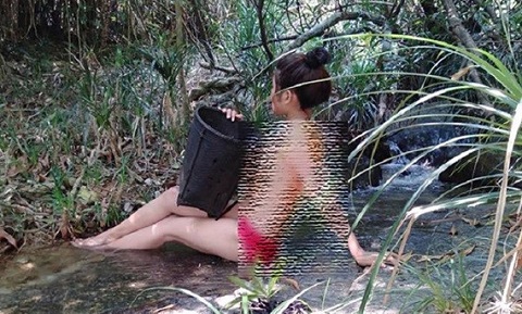 Khoe những hình ảnh bán n.ude khi tắm ở suối, cô nàng C.S. đã phải hứng chịu nhiều "gạch đá" từ cư dân mạng.
