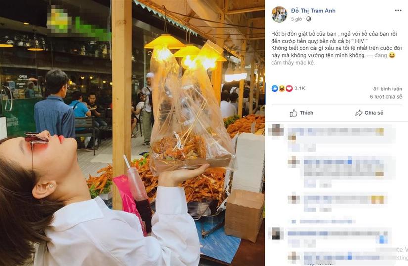 Trước những tin đồn thất thiệt bị đồn ngủ với bồ của bạn thân dẫn đến nhiễm HIV, Trâm Anh lên Facebook than thở.