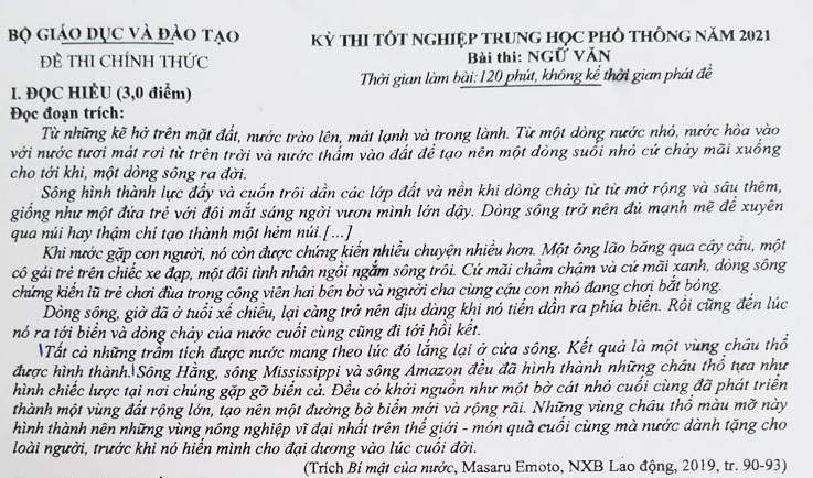 Bộ Giáo dục và Đào tạo (GD&ĐT) vừa công bố đáp án và thang điểm môn Ngữ văn trong kỳ thi tốt nghiệp THPT đợt 1 năm 2021.