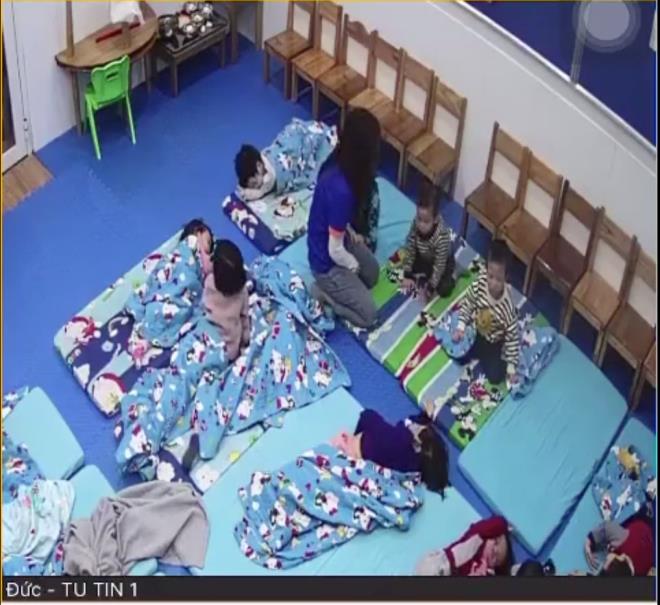 Bé T.Đ. (3 tuổi) bị cô giáo trường mầm non Happy Kids (Hà Nội) xốc nách, đưa ra ngoài cửa do không chịu ngủ trưa.