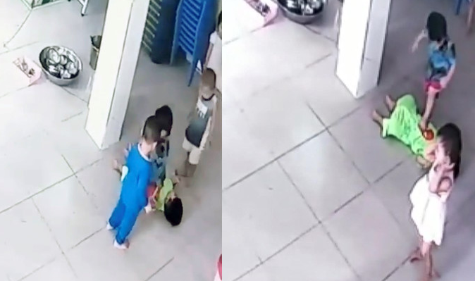 Bé trai 17 tháng tuổi nằm bất động bị các bạn giẫm, đạp lên người ở trường mầm non