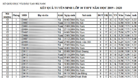 Hà Nam chính thức công bố điểm thi vào lớp 10 năm 2019