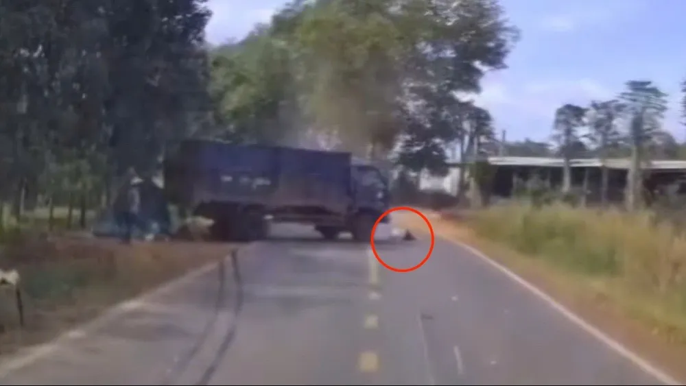 CLIP ghi lại vụ việc xe tải cán qua người nạn nhân 2 lần