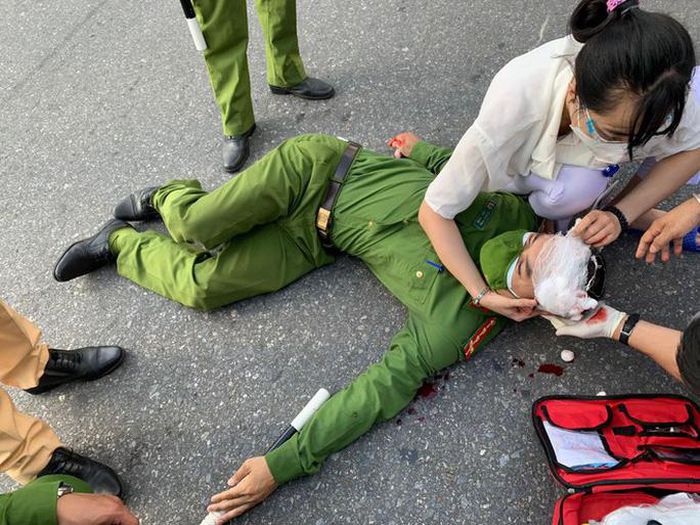 Điều khiển xe máy không BKS, khi cảnh sát ra tín hiệu dừng xe, Trịnh Anh Anh, sinh viên năm cuối một trường cao đẳng trên địa bàn Hà Nội, đã tăng ga tông vào đại úy công an, gây thương tích.