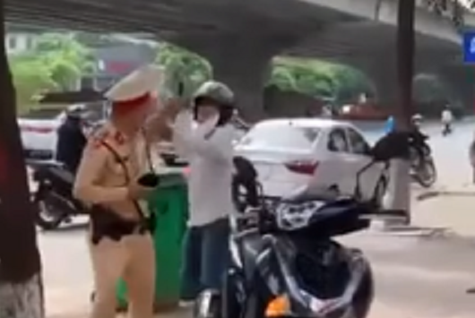 Mặc dù CSGT đã ra hiệu dừng xe nhưng người điều khiển xe SH vượt đèn đỏ đã không chấp hành, thậm chí còn có hành vi chống đối, liên tục chửi bới và dùng gạch tấn công 2 đồng chí cảnh sát.