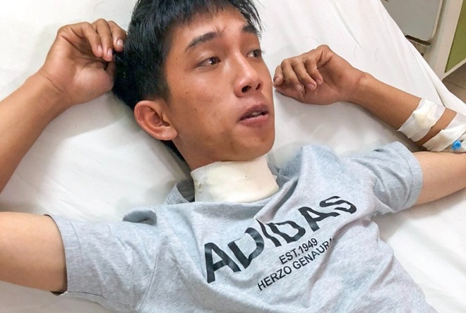 Khi anh đi qua Cầu Ké, vị khách bảo anh Giang đi thêm một đoạn rồi yêu cầu dừng lại. Khi nam tài xế vừa dừng xe, đối tượng liền rút vật sắc cứa vào cổ anh.