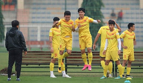 Bài tập không quá khó được HLV Park Hang Seo đưa ra trong buổi tập chiều 9/12, đòi hỏi các tuyển thủ phải thể hiện được sự ăn ý. Bài kiểm tra này đã được Công Phượng - Quang Hải thực hiện rất tốt.