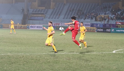 Văn Quyết, Duy Mạnh và Hùng Dũng cùng ghi bàn, giúp đại diện Việt Nam đè bẹp Nagaworld trên sân nhà tối 26/2.