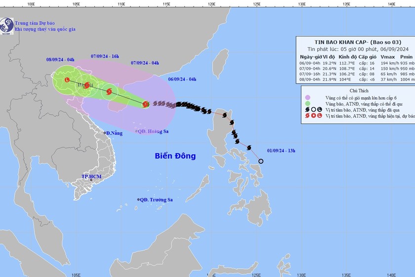 Theo Trung tâm Dự báo khí tượng thủy văn quốc gia, hiện nay (2/9), một cơn bão có tên quốc tế là Yagi đang hoạt động ở vùng biển phía đông đảo Luzon (Philippines). Dự báo, khoảng chiều và đêm 3/9, bão Yagi đi vào Biển Đông.