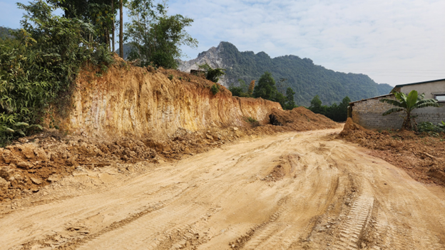 Có mặt tại thôn Đồng Xã, xã Xuân Phúc (Như Thanh, Thanh Hóa), chúng tôi được người dân dẫn tới điểm mỏ khai thác đất của công ty Minh Tuấn. Tại đây, phóng viên ghi nhận được thực tế một điểm khai thác đất đang hoạt động trên diện tích rộng, có dấu hiệu không tuân thủ phương án khai thác được phê duyệt. Đáng chú ý, ngay đoạn đầu vào mỏ, có dấu vết của việc khai thác ngoài phạm vi cho phép với độ cao được hạ tới 2 – 3m, thậm chí còn thấp hơn mặt đường dân sinh.
