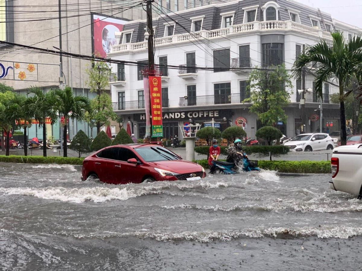 Cơn mưa lớn trút xuống từ trưa ngày 5/5 khiến nhiều tuyến đường trên địa bàn TP Thanh Hóa chìm trong biển nước, nhiều phương tiện chết máy.