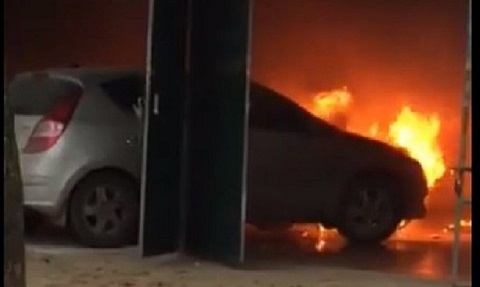 Đang đậu trong nhà, ô tô vẫn bốc cháy ngùn ngụt