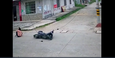 Đâm trúng đường dây điện, người phụ nữ đi xe máy bị nhấc bổng lên không trung rồi rơi xuống đường.