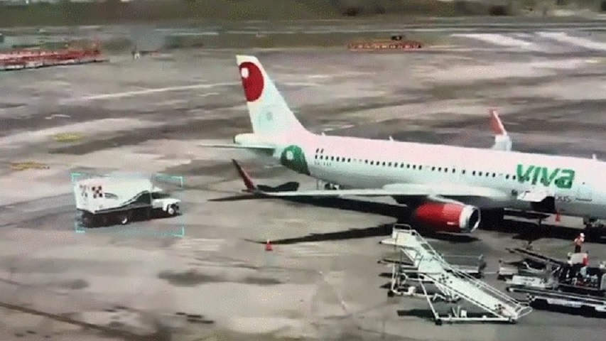 Một chiếc xe tải chở đồ ăn đã đâm vào một chiếc máy bay khi nó đang đỗ tại một sân bay ở Mexico.