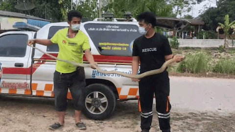 Chỉ dùng tay không, người đàn ông vẫn tóm gọn được con rắn hổ mang chúa nặng hơn 10kg khiến người xem rùng mình.