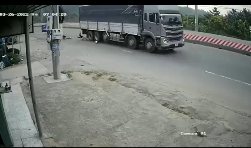Chiếc xe tải va chạm với xe máy và một xe đạp trên đường ĐT741 (Bình Dương). Camera an ninh ghi lại cho thấy, người phụ nữ ngồi trên xe máy bị xe tải cán qua tử vong tại chỗ, trong khi hai người khác nguy kịch.