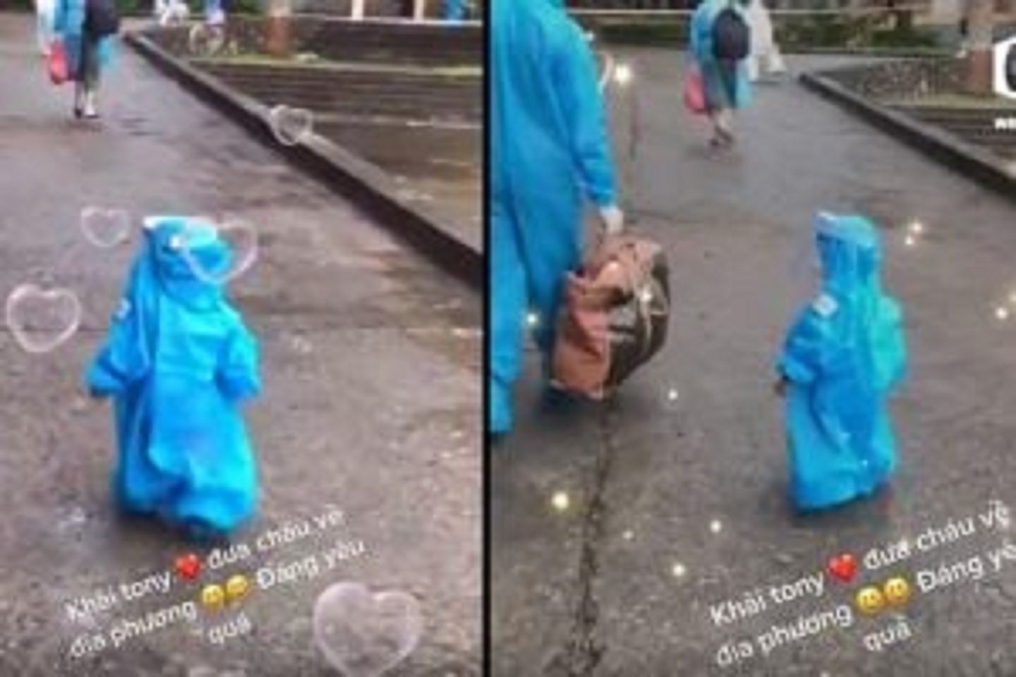 Hình ảnh em bé 3 tuổi mặc đồ bảo hộ trùm kín thân hình nhỏ bé trở về nhà cùng người thân sau thời gian cách ly 28 ngày đang gây chú ý trên mạng xã hội.