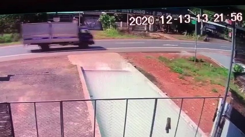 Người đàn ông điều khiển xe máy chạy tốc độ cao, bất ngờ tông thẳng vào đuôi chiếc xe tải lưu thông cùng chiều.