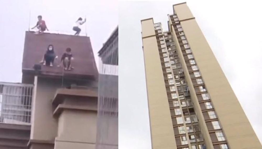 Hoảng hồn cảnh 4 đứa trẻ vô tư chơi đùa trên nóc chung cư 32 tầng