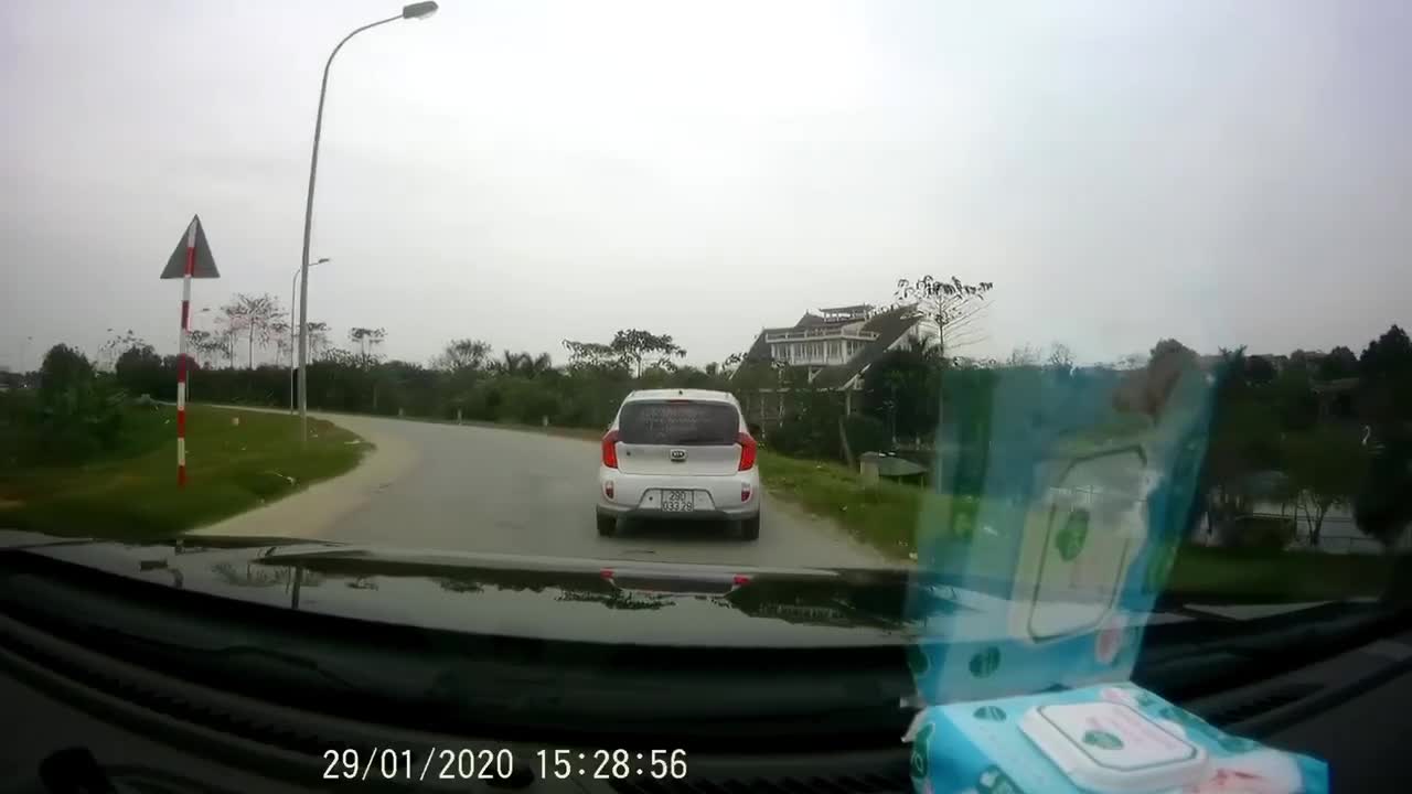 Người phụ nữ điều khiển xe máy chạy với tốc độ cao, bất ngờ phanh gấp rồi lao thẳng vào gầm ô tô ngay giữa ngã tư.