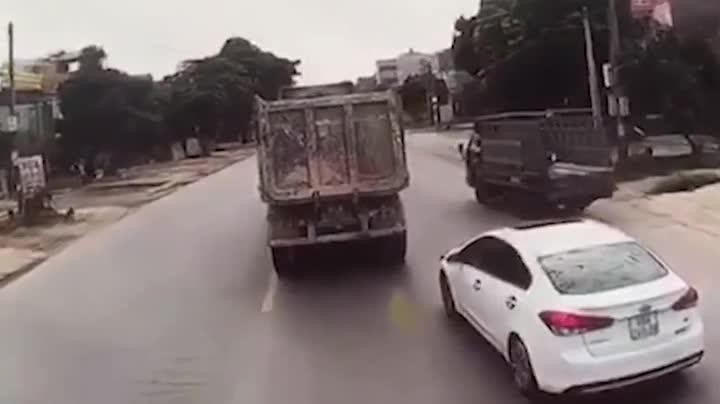 Clip: Nữ tài xế cắt đầu xe tải "cực gắt" rồi gây họa cho xe đi ngược chiều