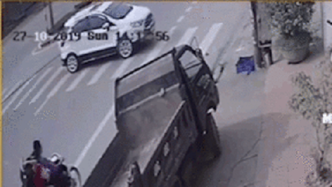 Xe tải quên đóng cửa thùng khi lưu thông trên đường khiến cánh cửa liên tục tung ra suýt va vào người đi đường. Sự việc xảy ra trưa ngày 16/10 trên một tuyến phố ở Nam Định.