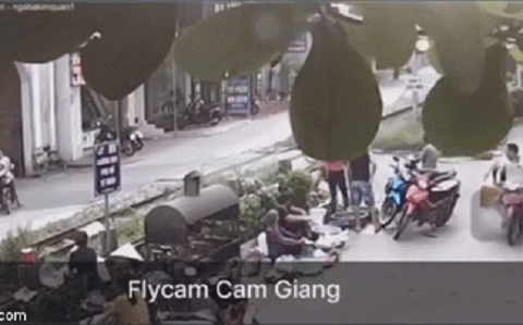 Chủ nhân chiếc điện thoại kịp thời gập cổ tay vào trong, khiến tên cướp bắt trượt. Chưa hết, người này còn giơ ngón cái như để chọc tức nam thanh niên.