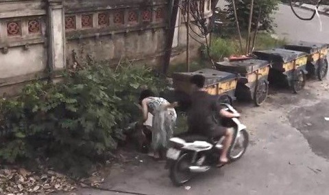 Thấy chiếc SH dựng trước cửa nhà không người trông coi, hai thanh niên đi xe máy lập tức dừng xe lại. Một trong hai tên tiến lại bẻ khóa chiếc xe sau đó cùng nhau tẩu thoát.