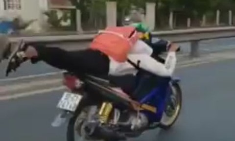 Nam tài xế nằm dài trên yên xe phóng tốc độ cao