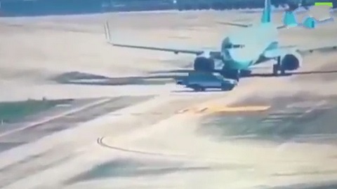 Ô tô chạy cắt đầu máy bay, phi công phanh gấp tránh va chạm