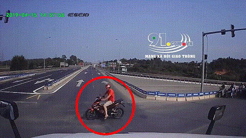 Trong khi các phương tiện đang dừng chờ đèn đỏ thì một nam thanh niên điều khiển xe máy bất ngờ vượt lên trước rồi tông thẳng vào hông chiếc xe khách.