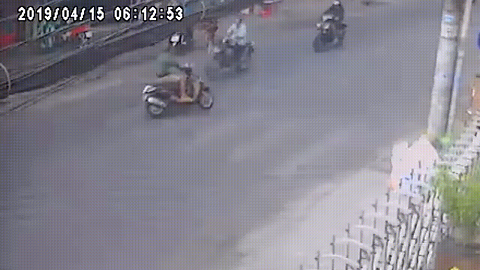 Do quá hoảng sợ khi bị con chó rượt đuổi theo mình, người đàn ông điều khiển xe máy bất ngờ té ngã giữa đường. May mắn người đàn ông này không bị thương nặng.